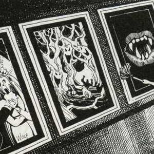 Ce tableau représente un mur maçonné grossièrement avec une porte. Alors que les personnages se retrouvent dans le tableau, à quelques mètres devant la porte, celle-ci s’ouvre violemment et un humanoïde aux canines proéminentes en jaillit, armes aux poings.