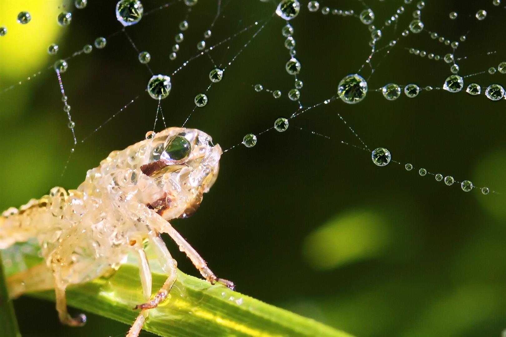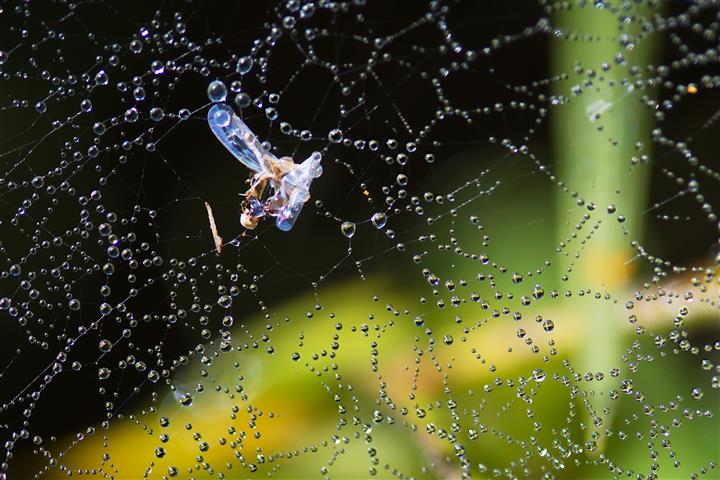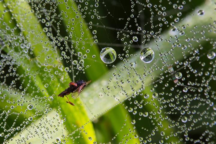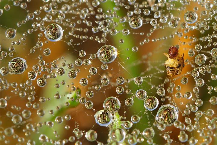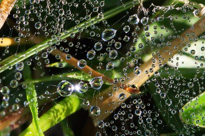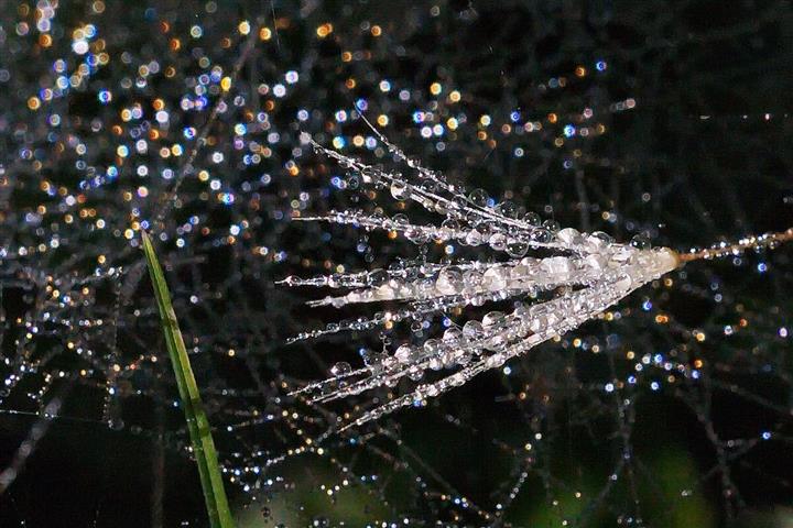 Au matin, quand les premiers rayons du soleil effleurent les prés humides, des dizaines de petites toiles d’araignées apparaissent au sol.