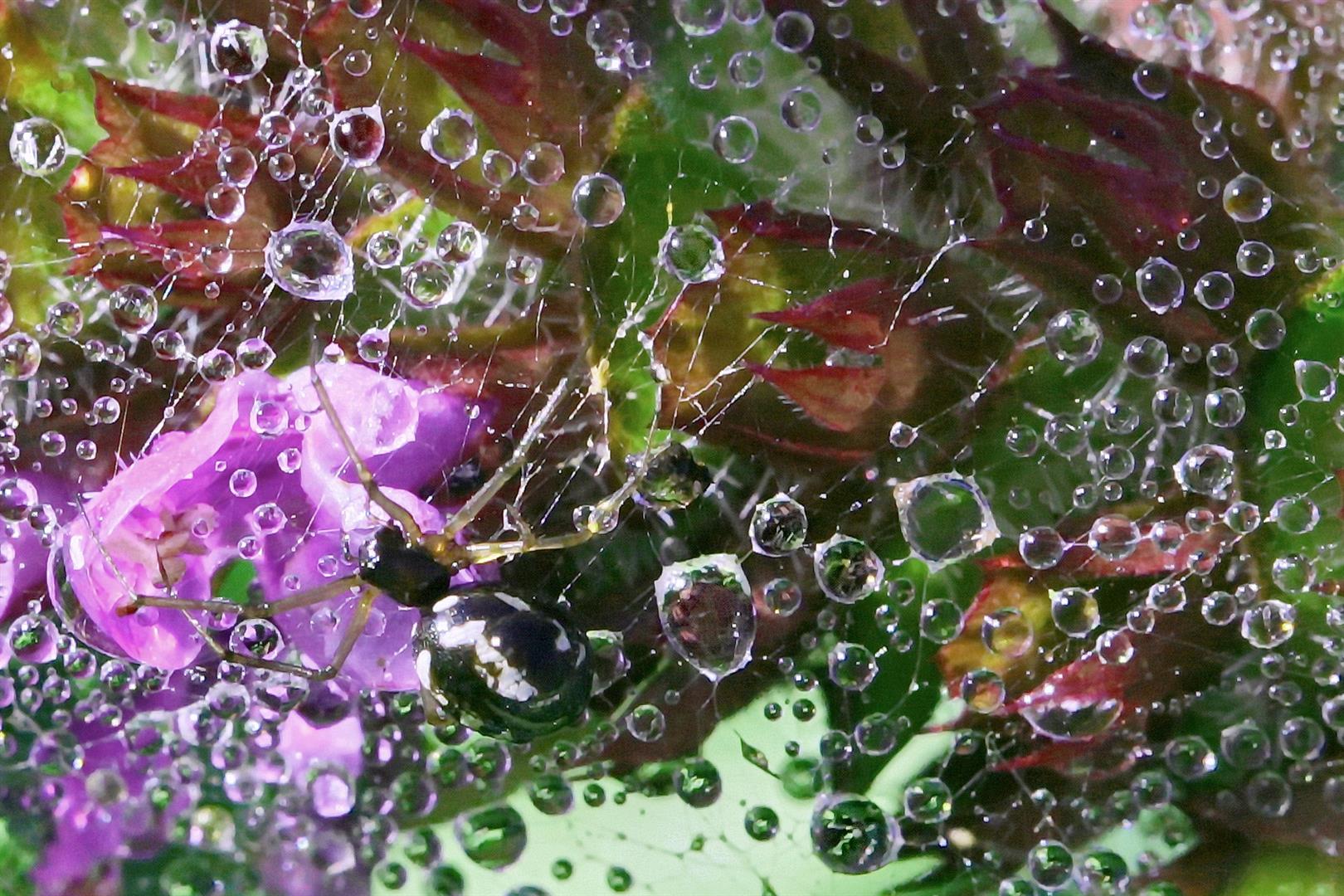 Si on se donne la peine de regarder de plus près, les jeux de lumière dans la rosée invitent l’imaginaire à plonger dans d’autres univers intersidéraux où des vaisseaux stellaires croisent au large d’étranges galaxies…