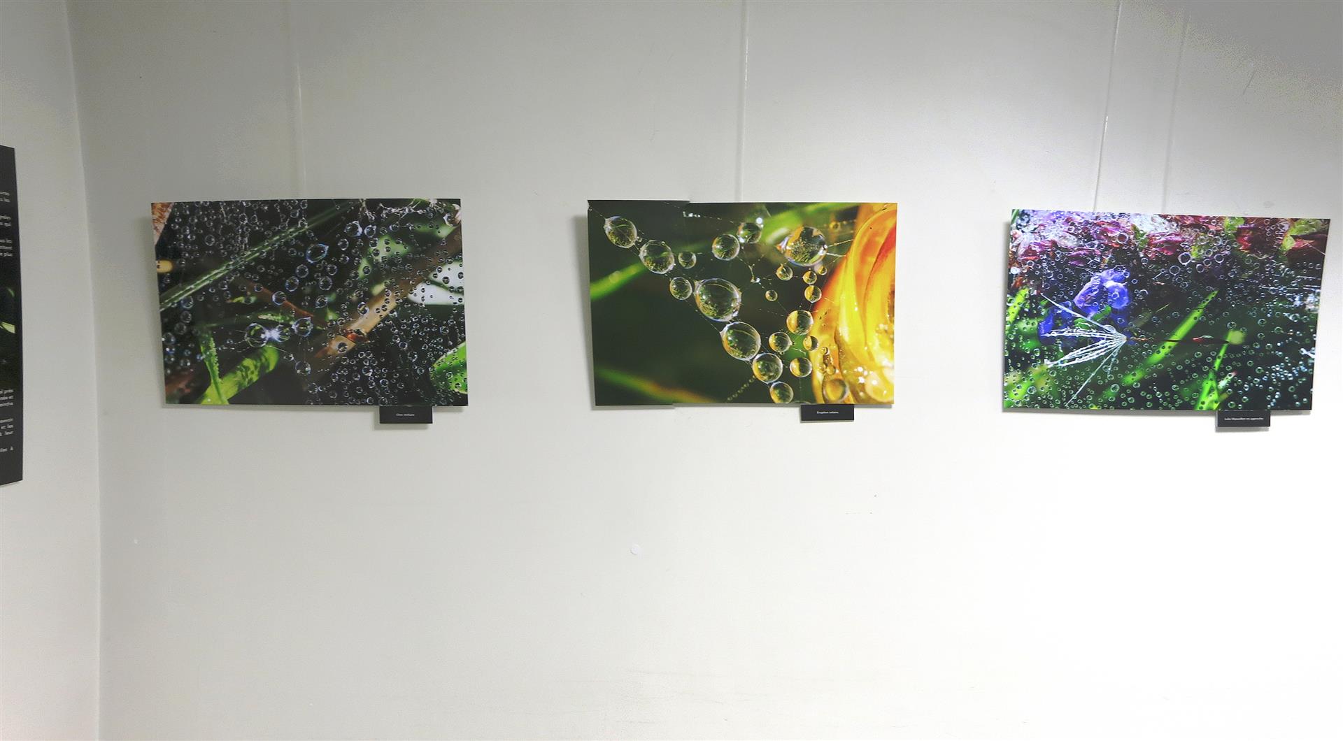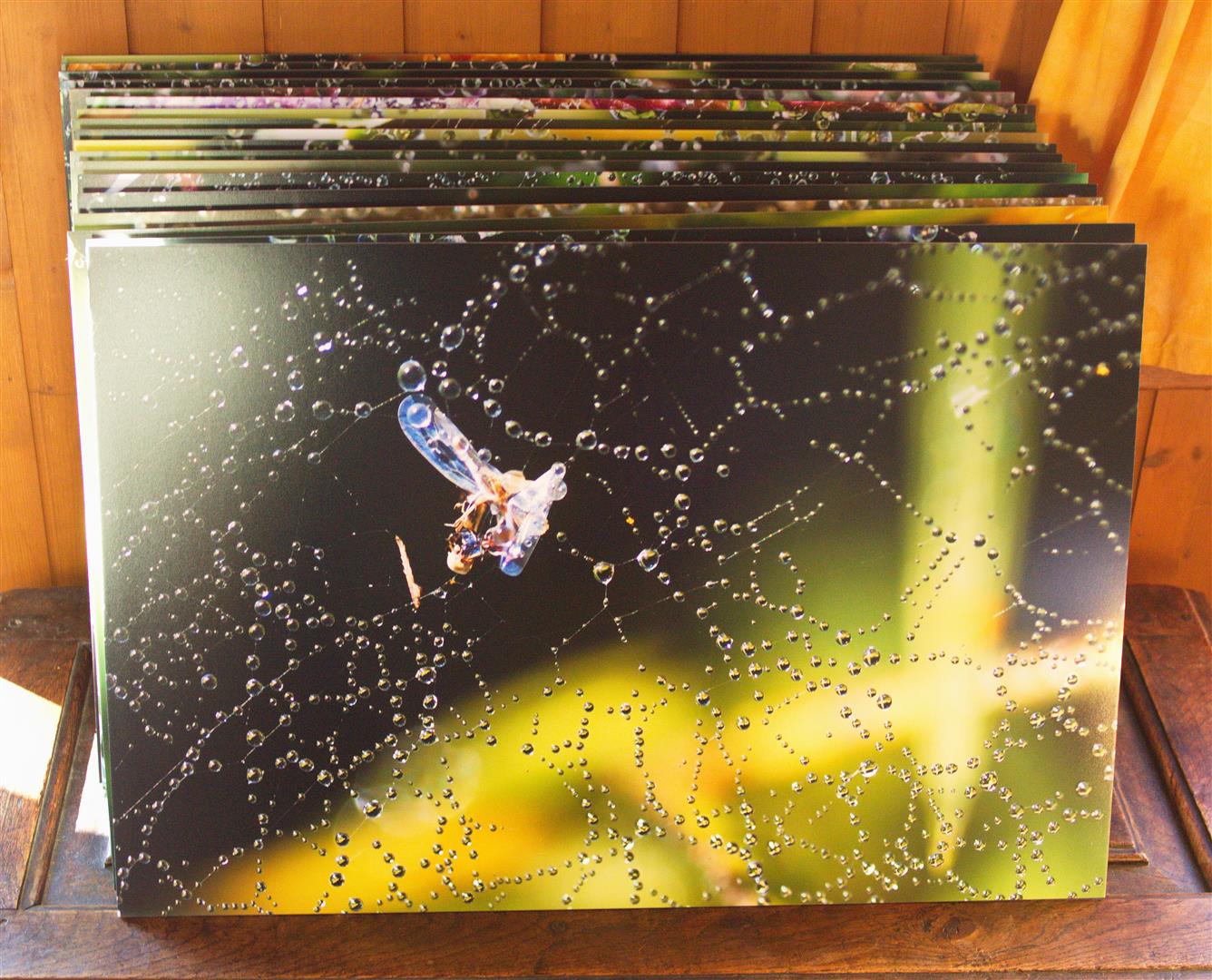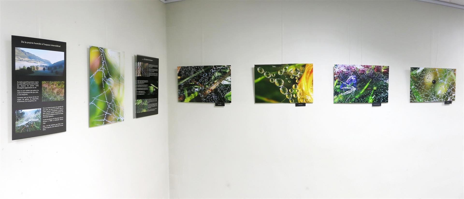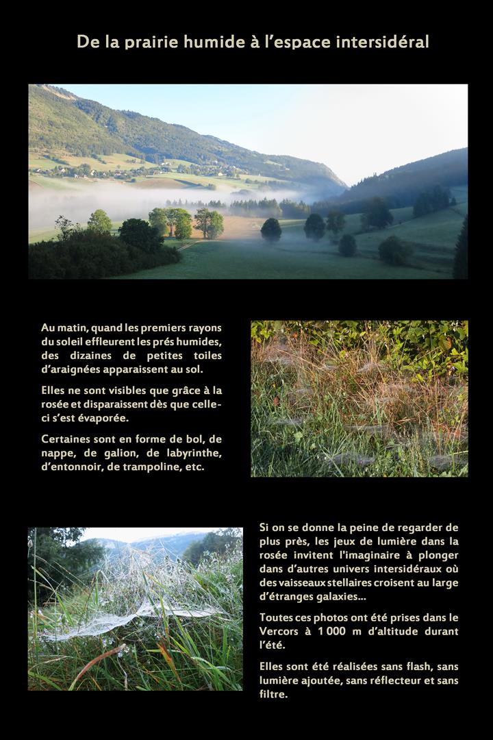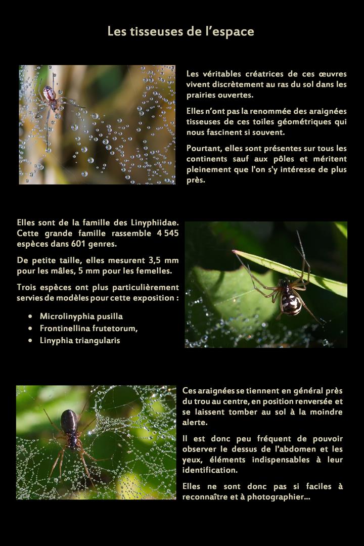 S’y rajoute deux panneaux avec du texte explicatif (un sur l’environnement où on été prises les photos et un sur les araignées qui ont tissé les toiles)